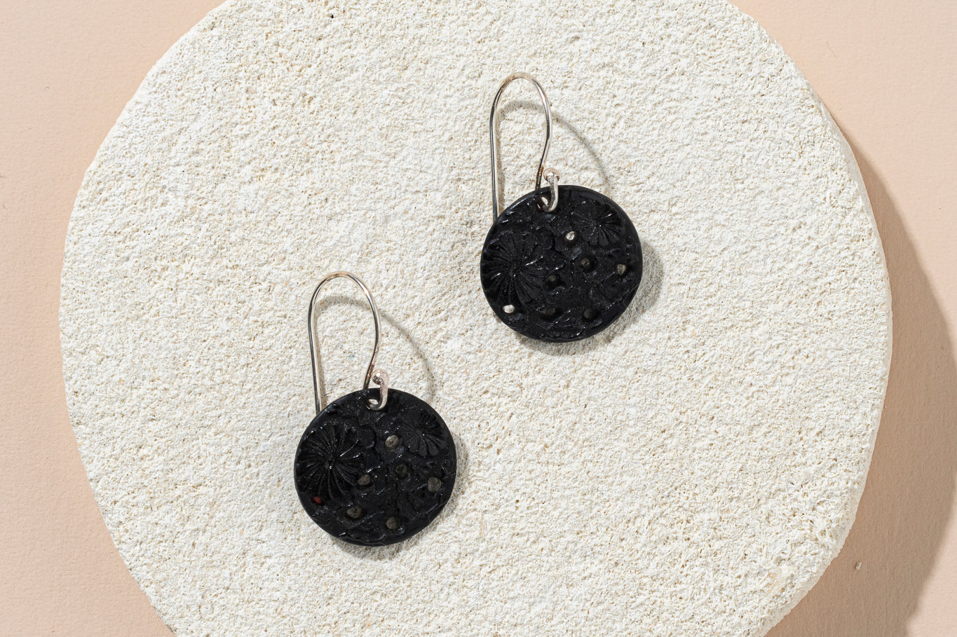 1920s Czechoslovakian glass circle earrings - black