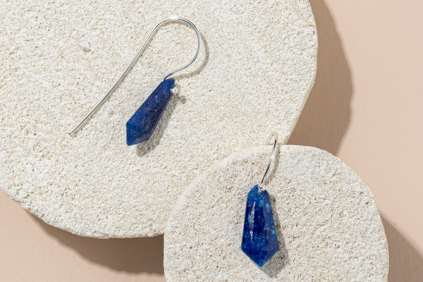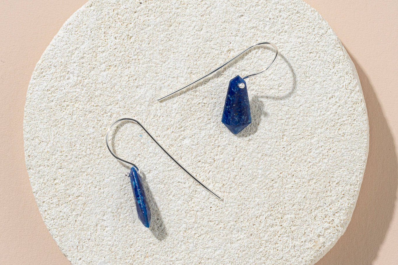 1920s Czechoslovakian glass diamond drop earrings - faux lapis