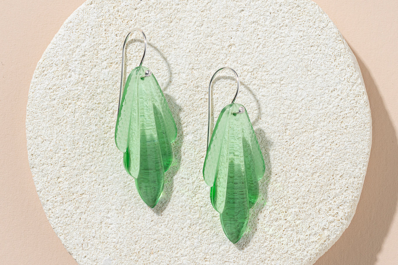 ONE PAIR LEFT: 1920s Czechoslovakian glass fan earrings - green