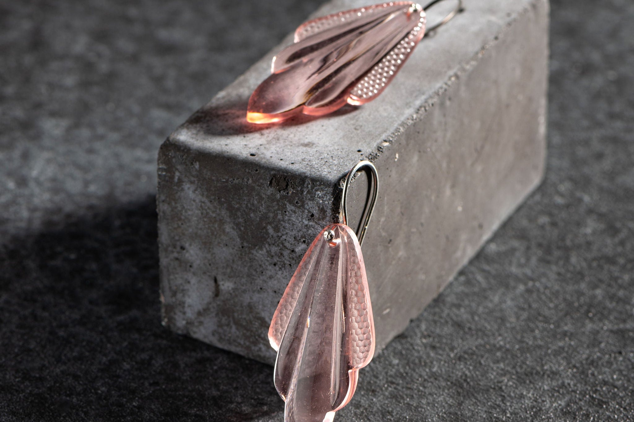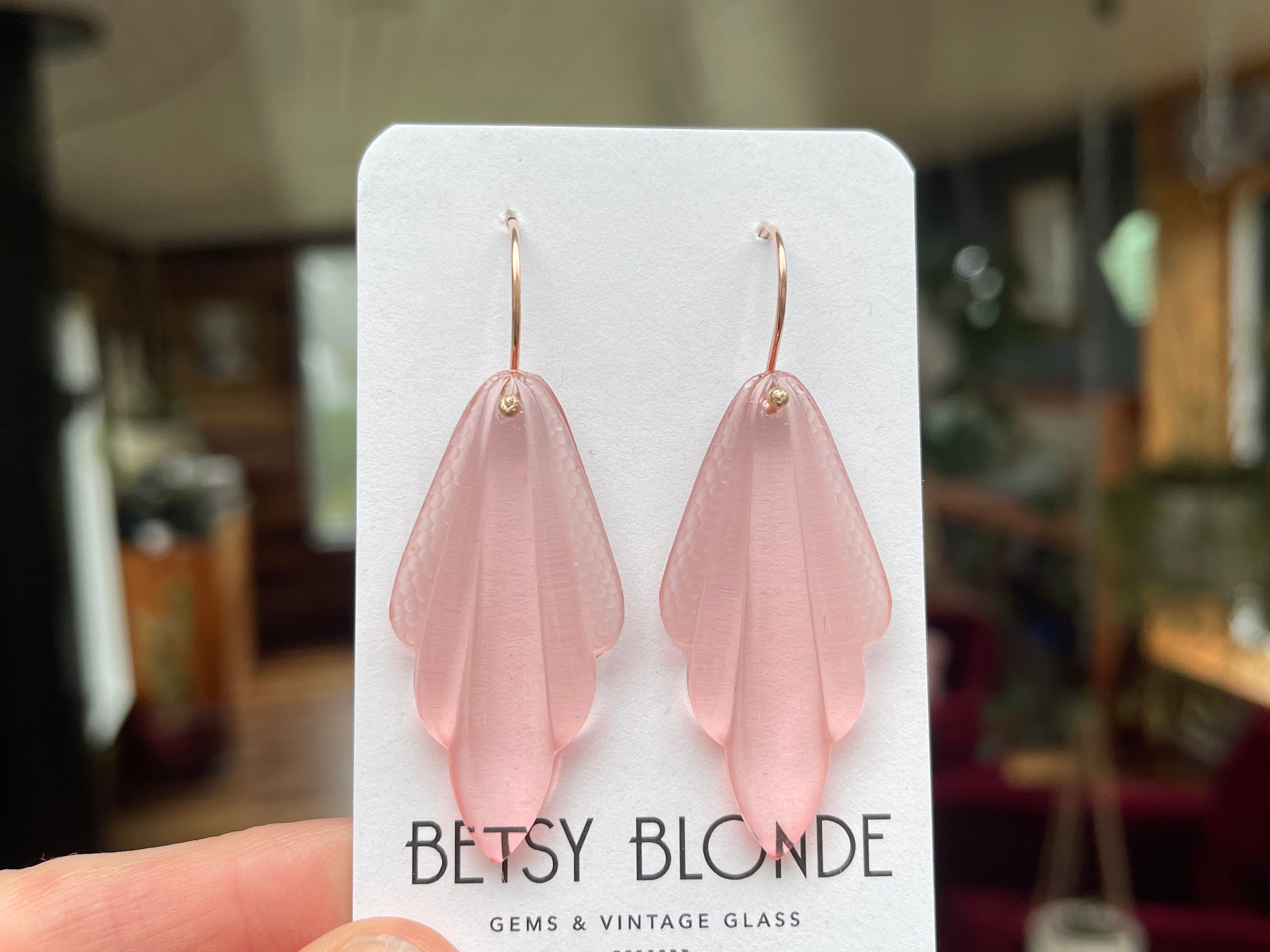 ARCHIVE: 1920s Czechoslovakian glass fan earrings - pink