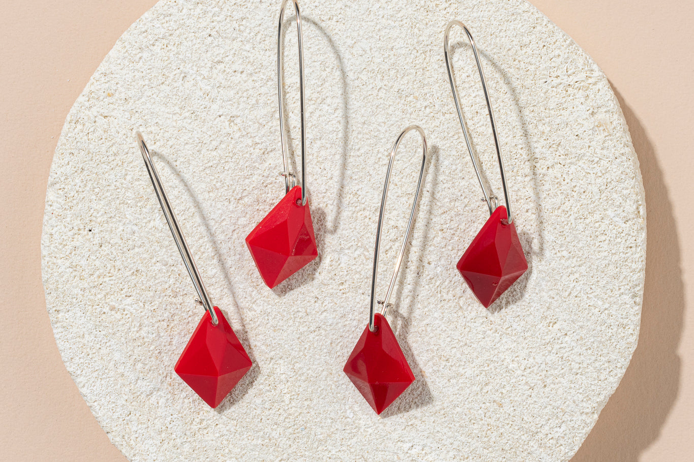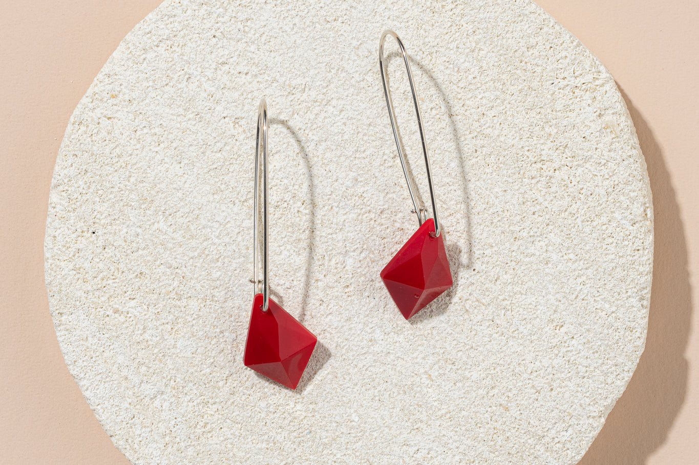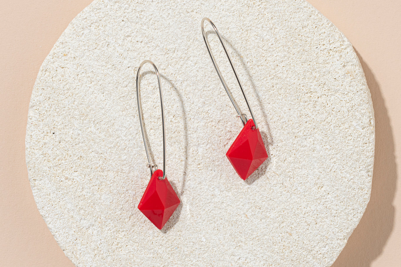 1960s West German glass kite earrings - bright or deep red