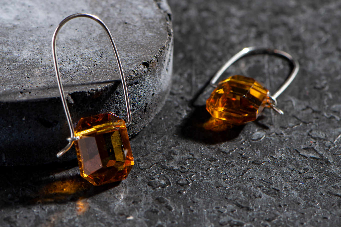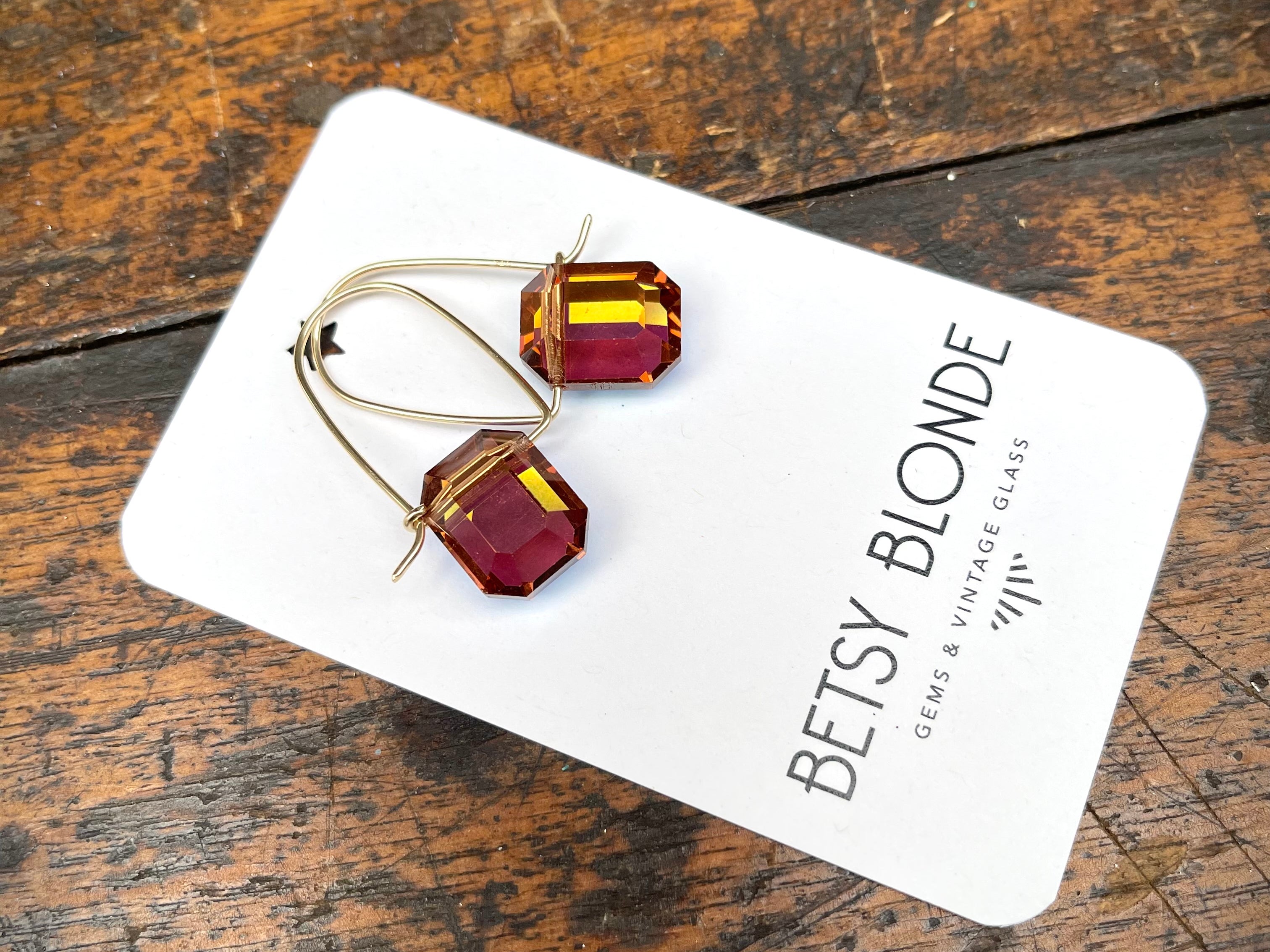 ARCHIVE: 1970s Austrian crystal emerald cut portrait earrings - honey