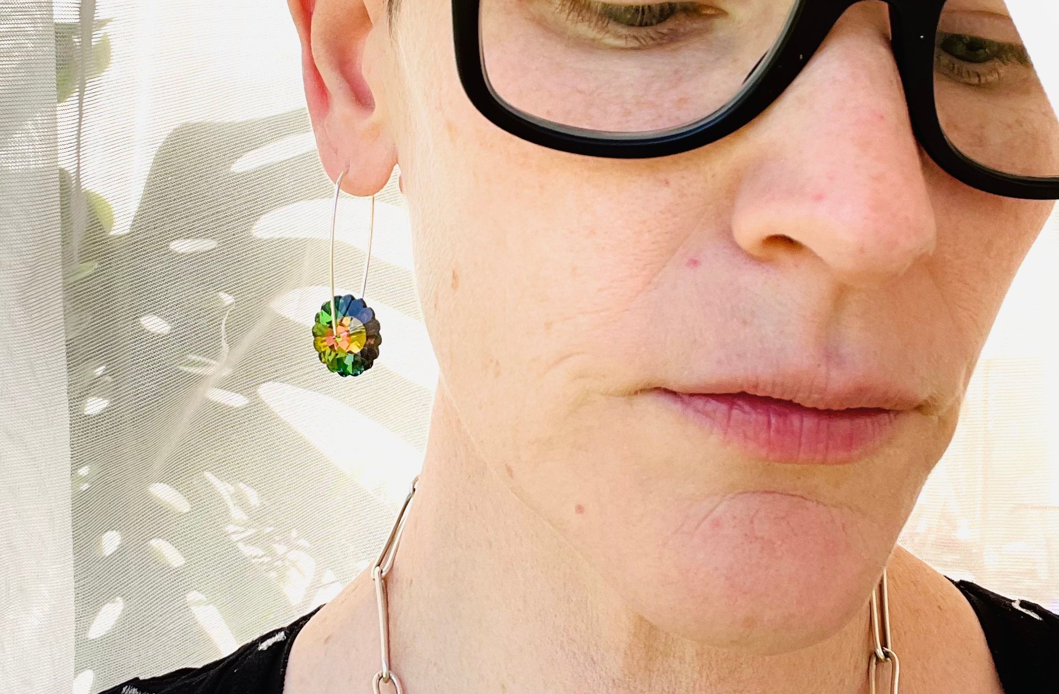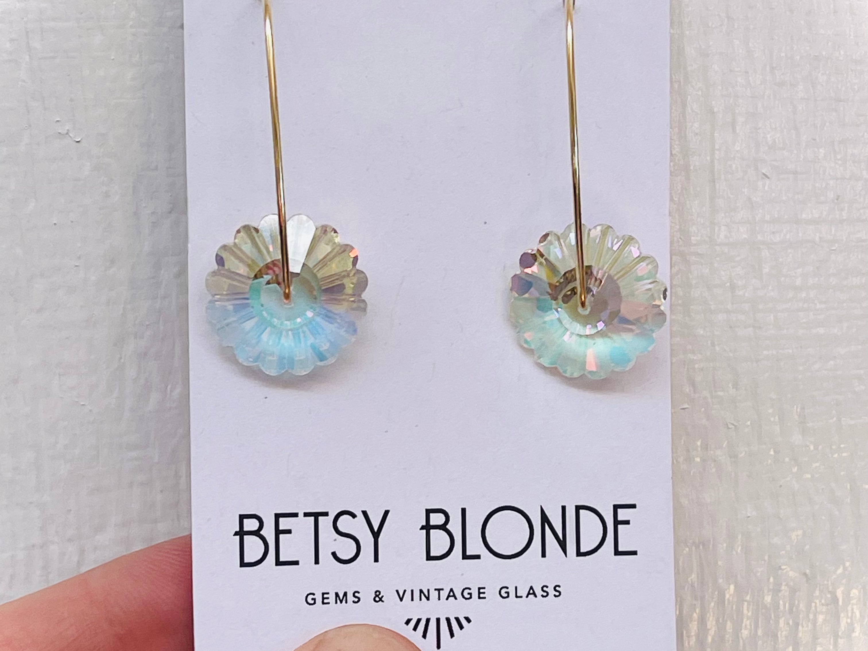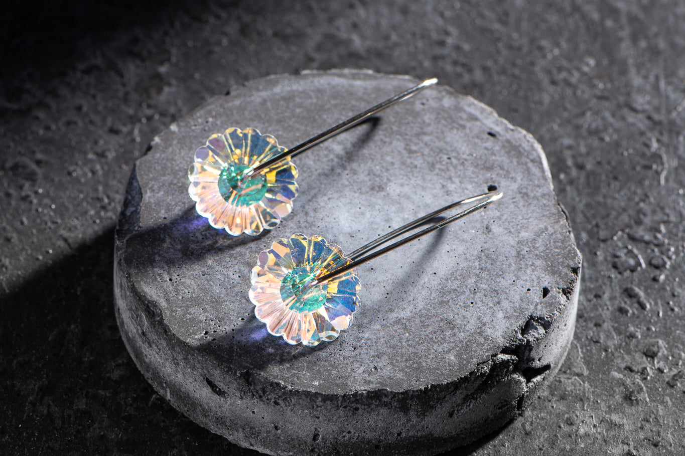 ARCHIVE: 1970s Austrian crystal flower earrings - Aurora Borealis