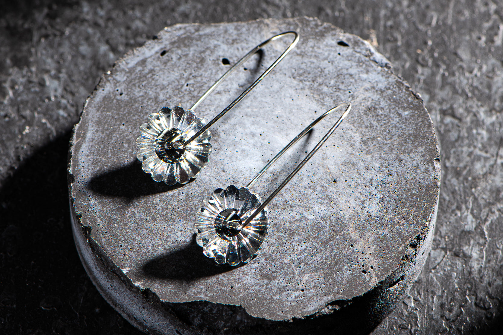 ARCHIVE: 1970s Austrian crystal flower earrings - silver