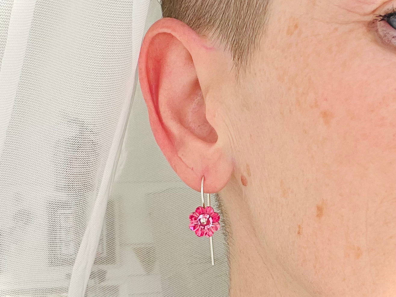 ARCHIVE: 1970s Austrian crystal little flower earrings - pink