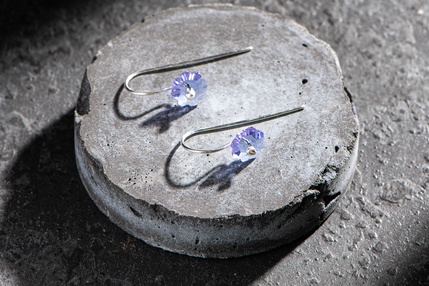 Sparkle central ensues when you wear these beauties. They are really, really spectacular in person. At a glance they're just a little purple flower, but when the light hits them, WOW!