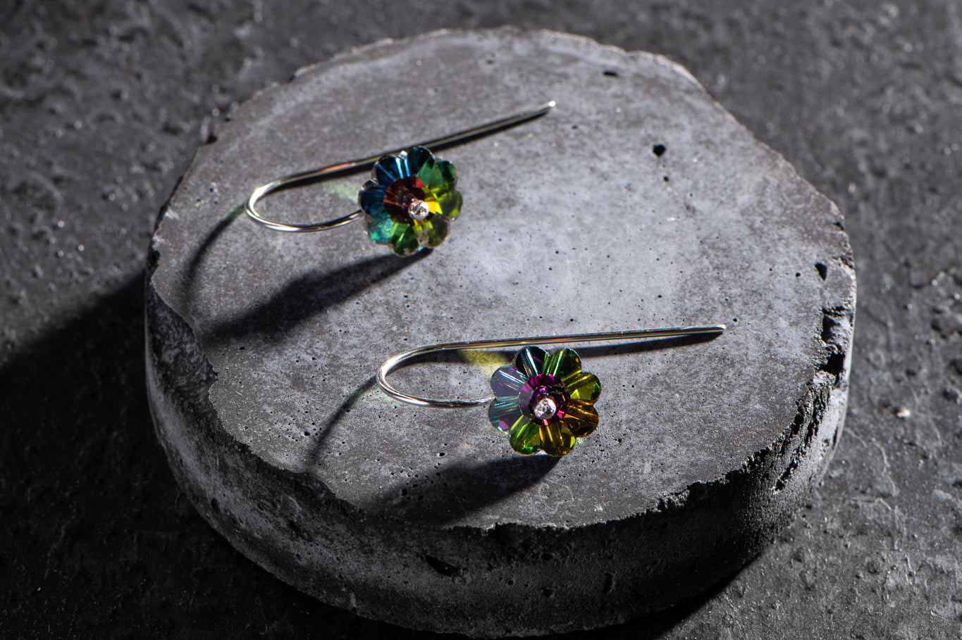 ARCHIVE: 1970s Austrian crystal little flower earrings - rainbow