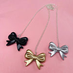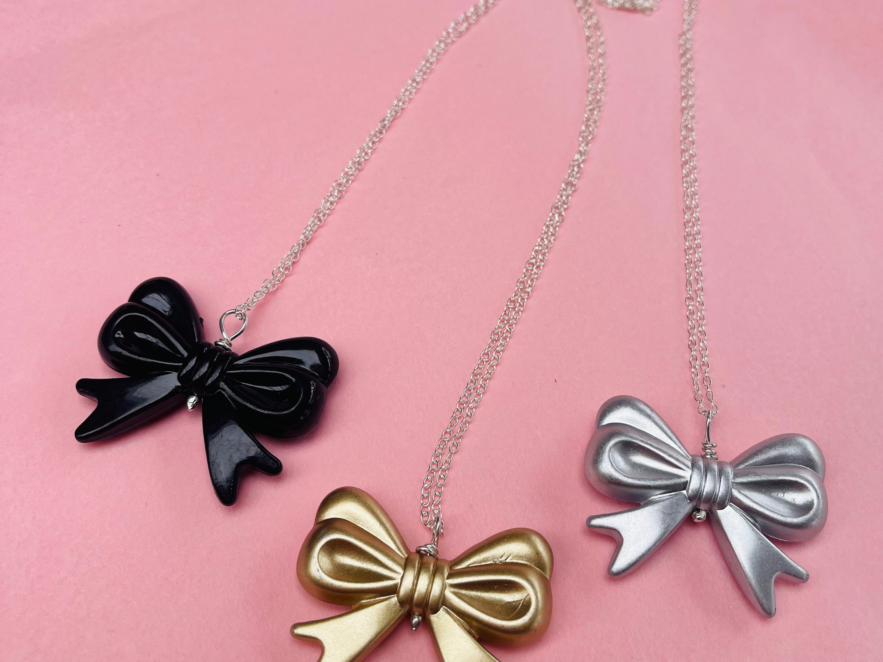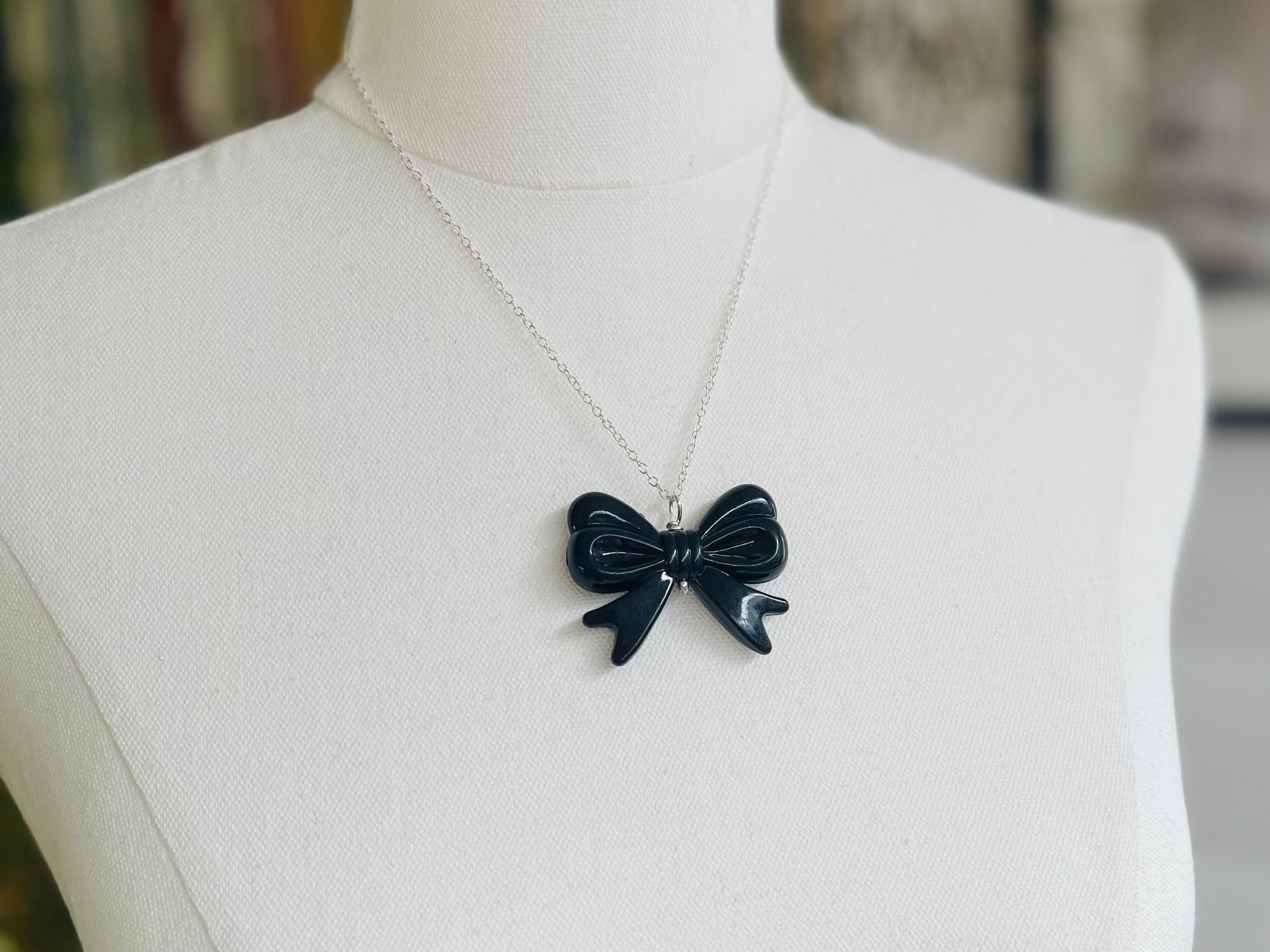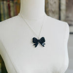 1980s acrylic bow & sterling silver necklace - black, gold or silver bow available
