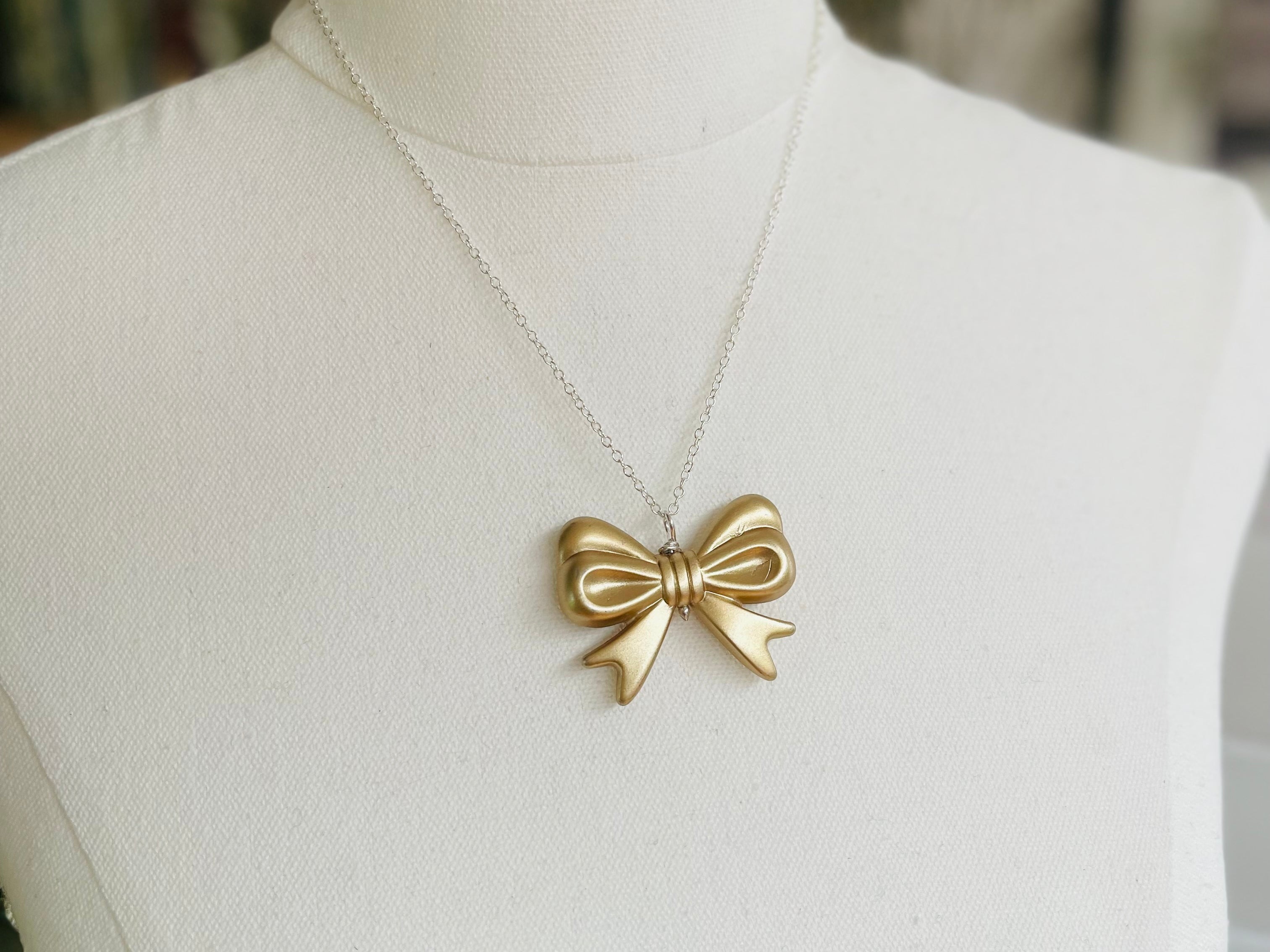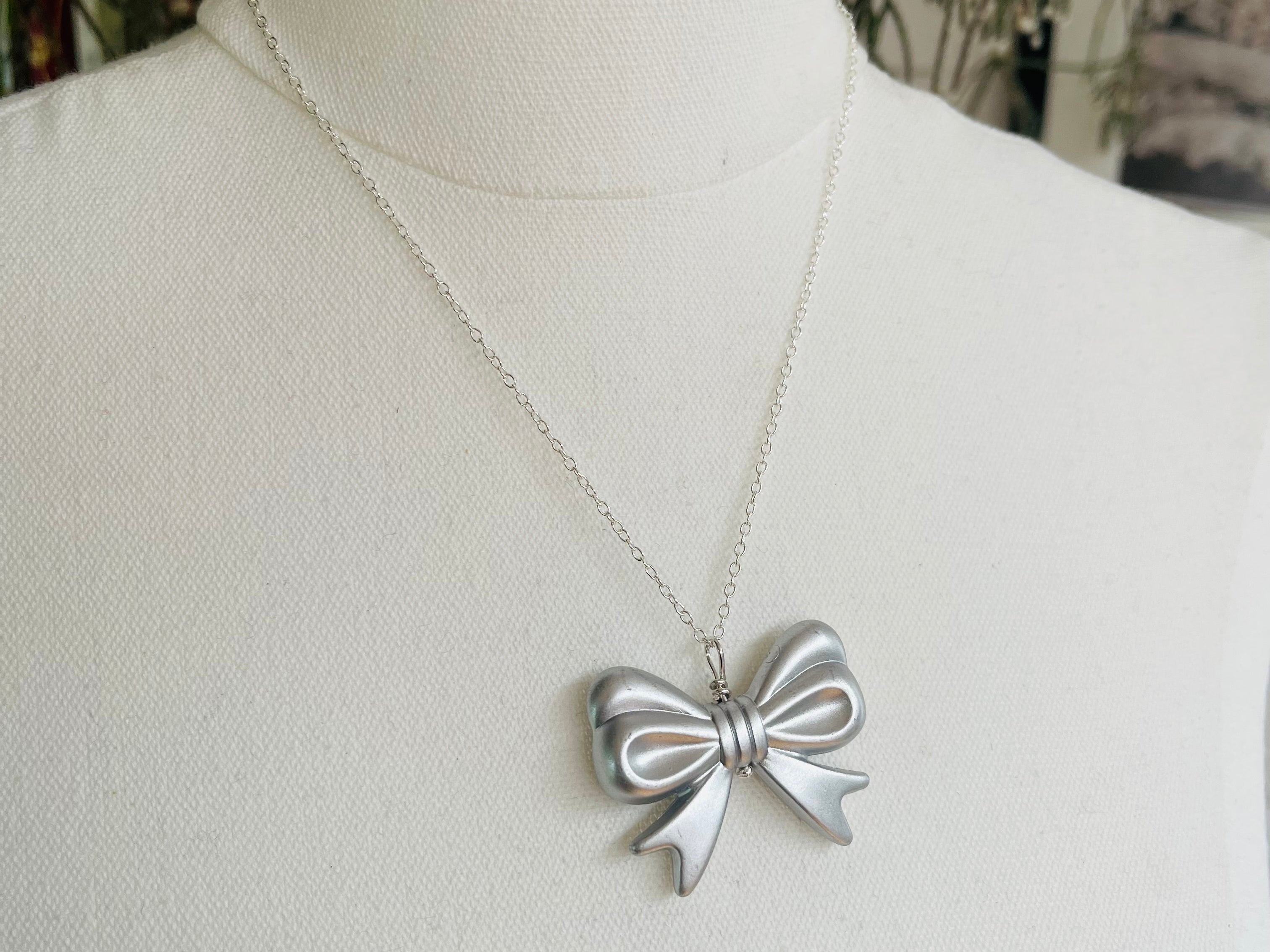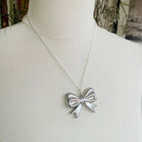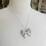 Size: Bow pendant measures approx 4.6cmx3.4cm, threaded onto a 45cm sterling silver chain.
