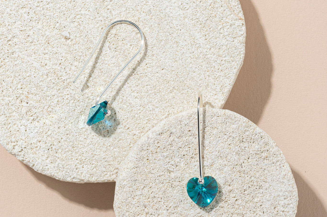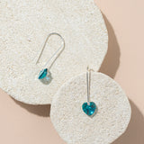 1980s Austrian crystal little heart earrings - teal