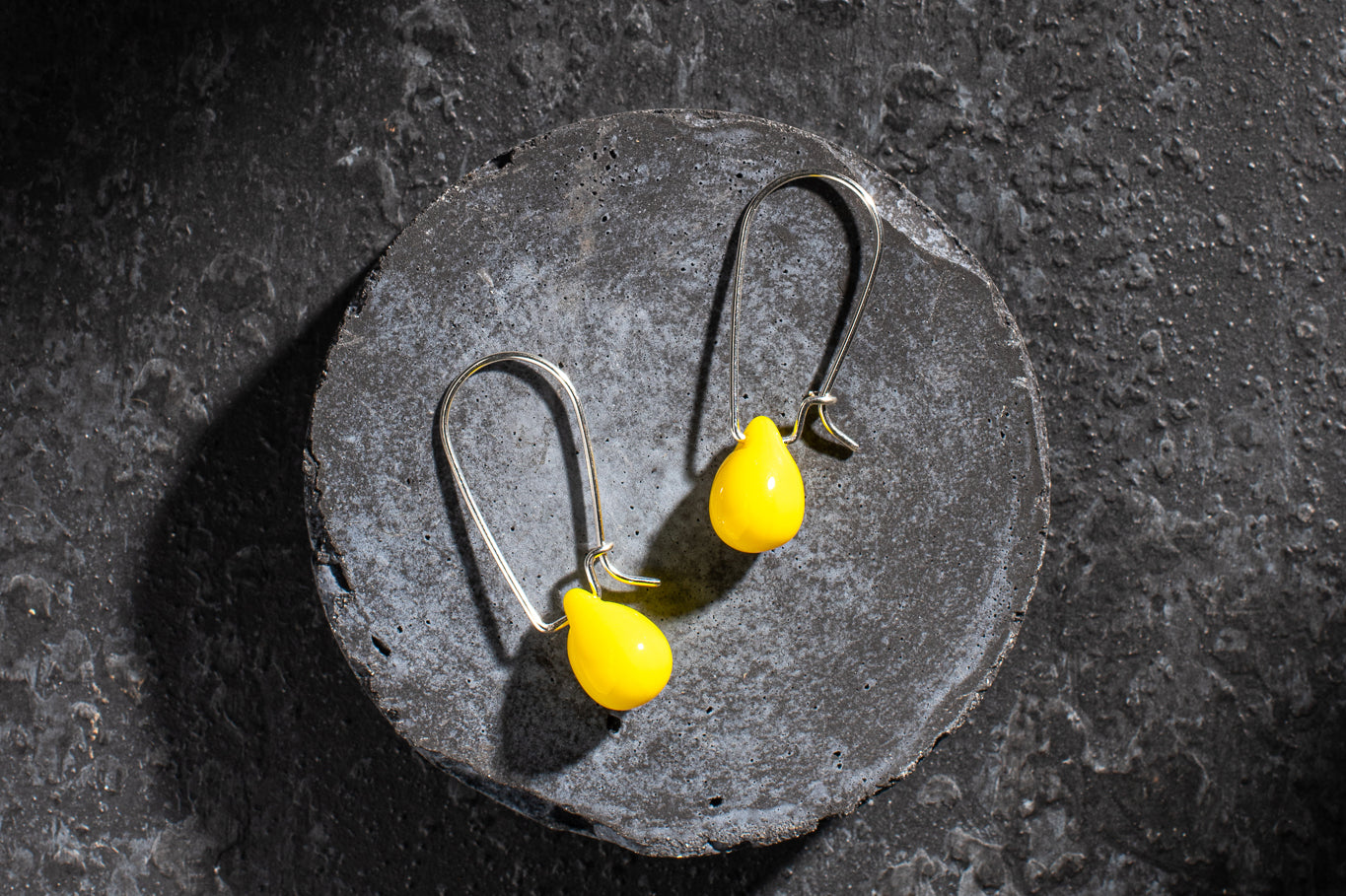 ARCHIVE: 1980s Czechoslovakian glass droplet earrings - opaque yellow