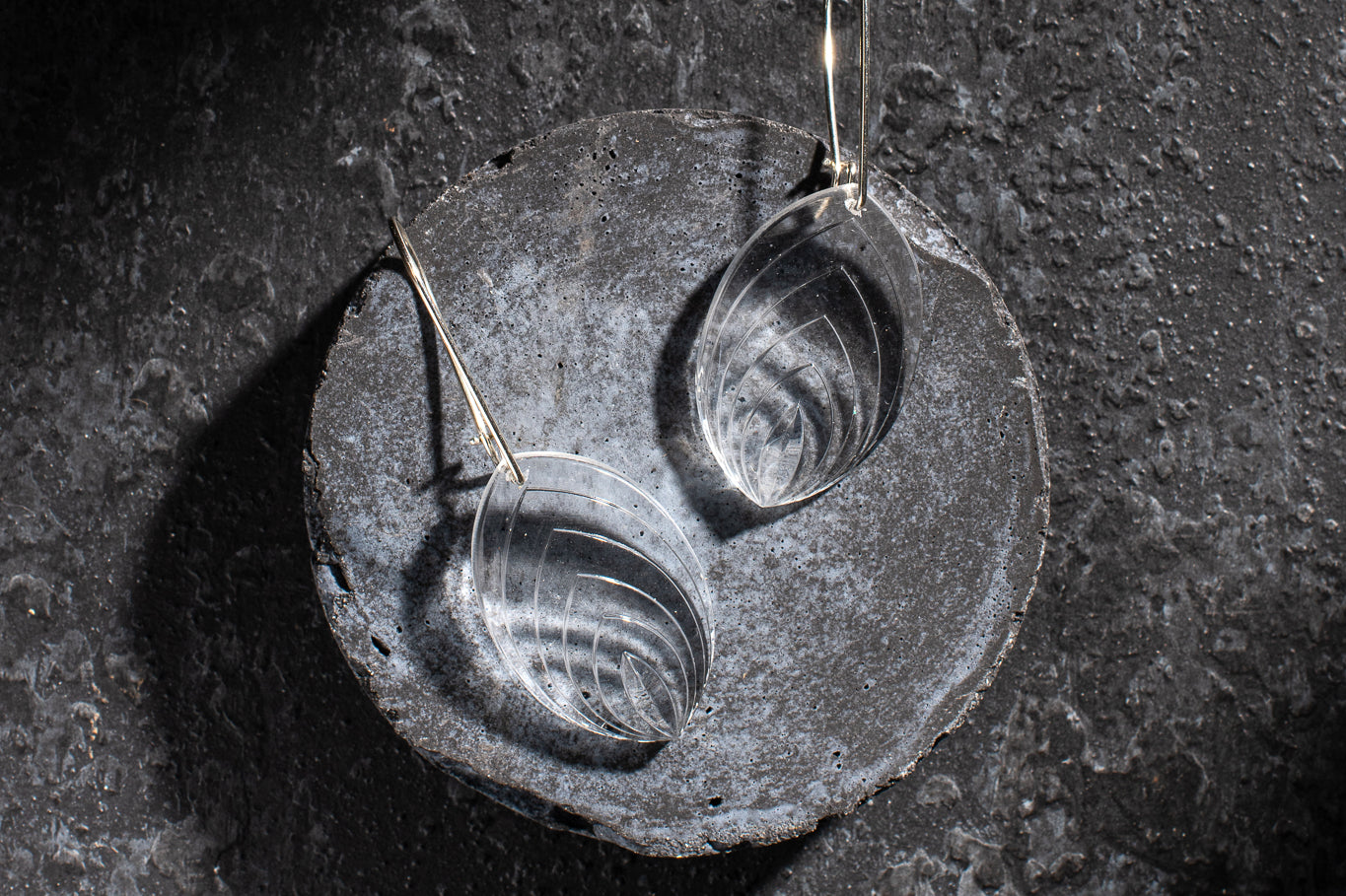 ARCHIVE: 1980s West German acrylic deco drop earrings - clear