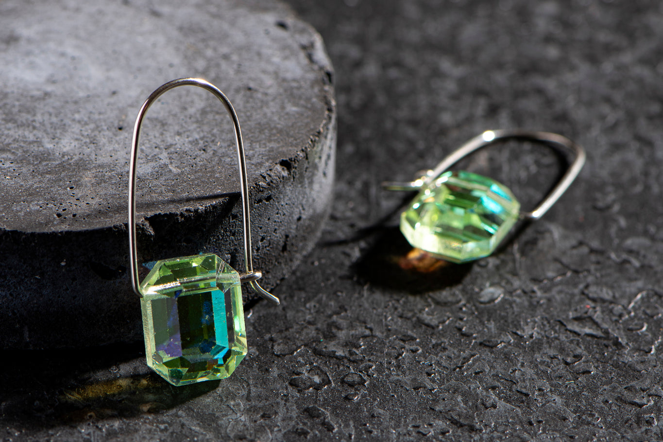 ARCHIVE: 1970s Austrian crystal emerald cut portrait earrings - peridot