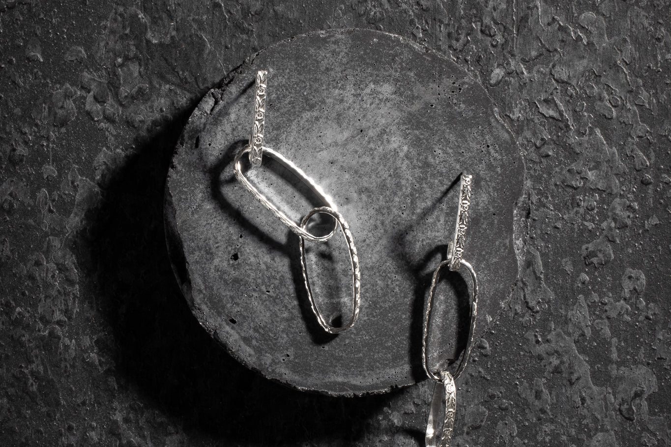 Rose embossed sterling silver wire chain link earrings. Made with a nod to one of my favourite places to visit, the Rose City of Portland, Oregon.
