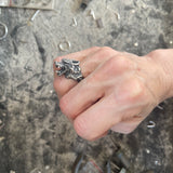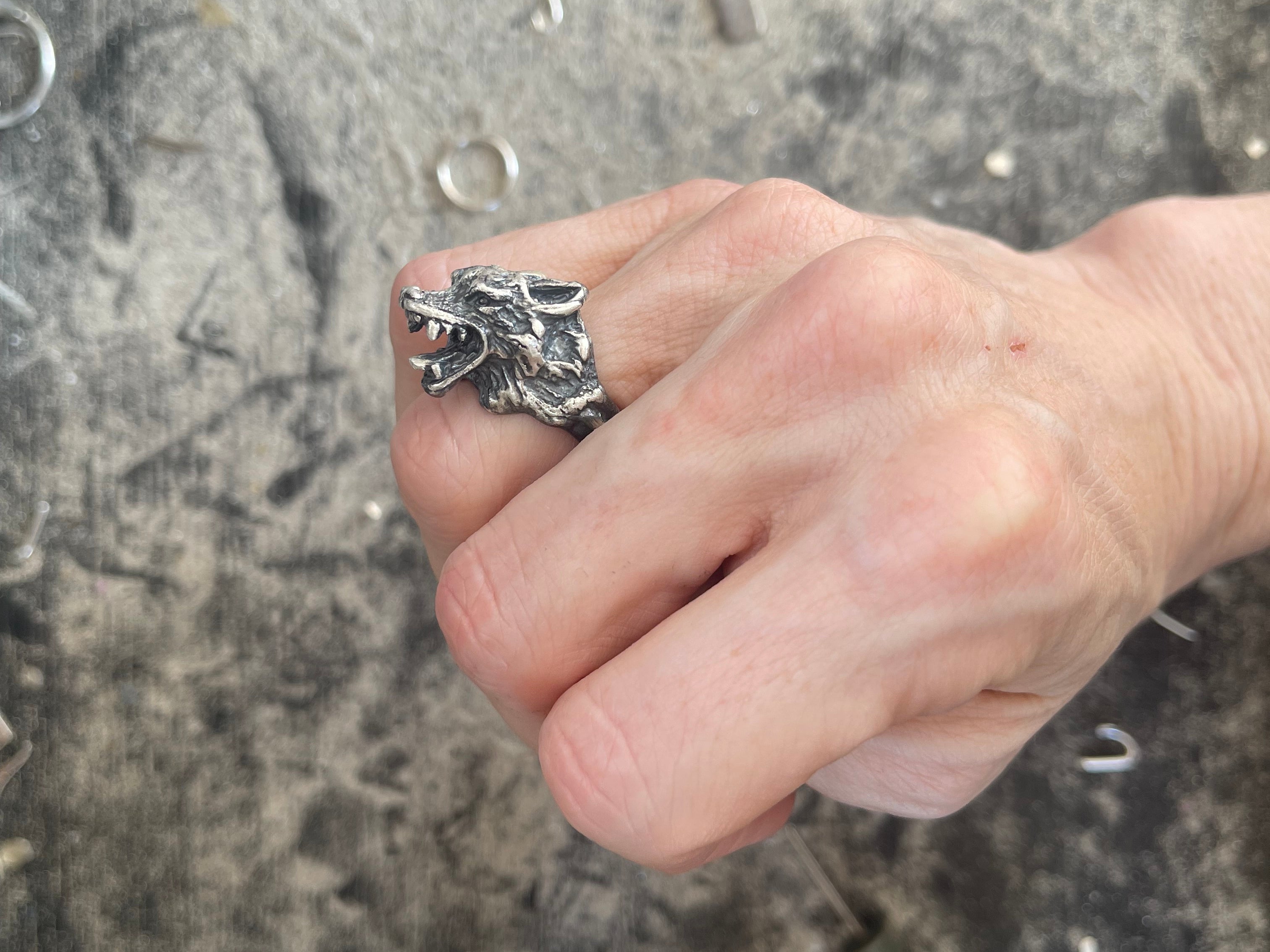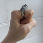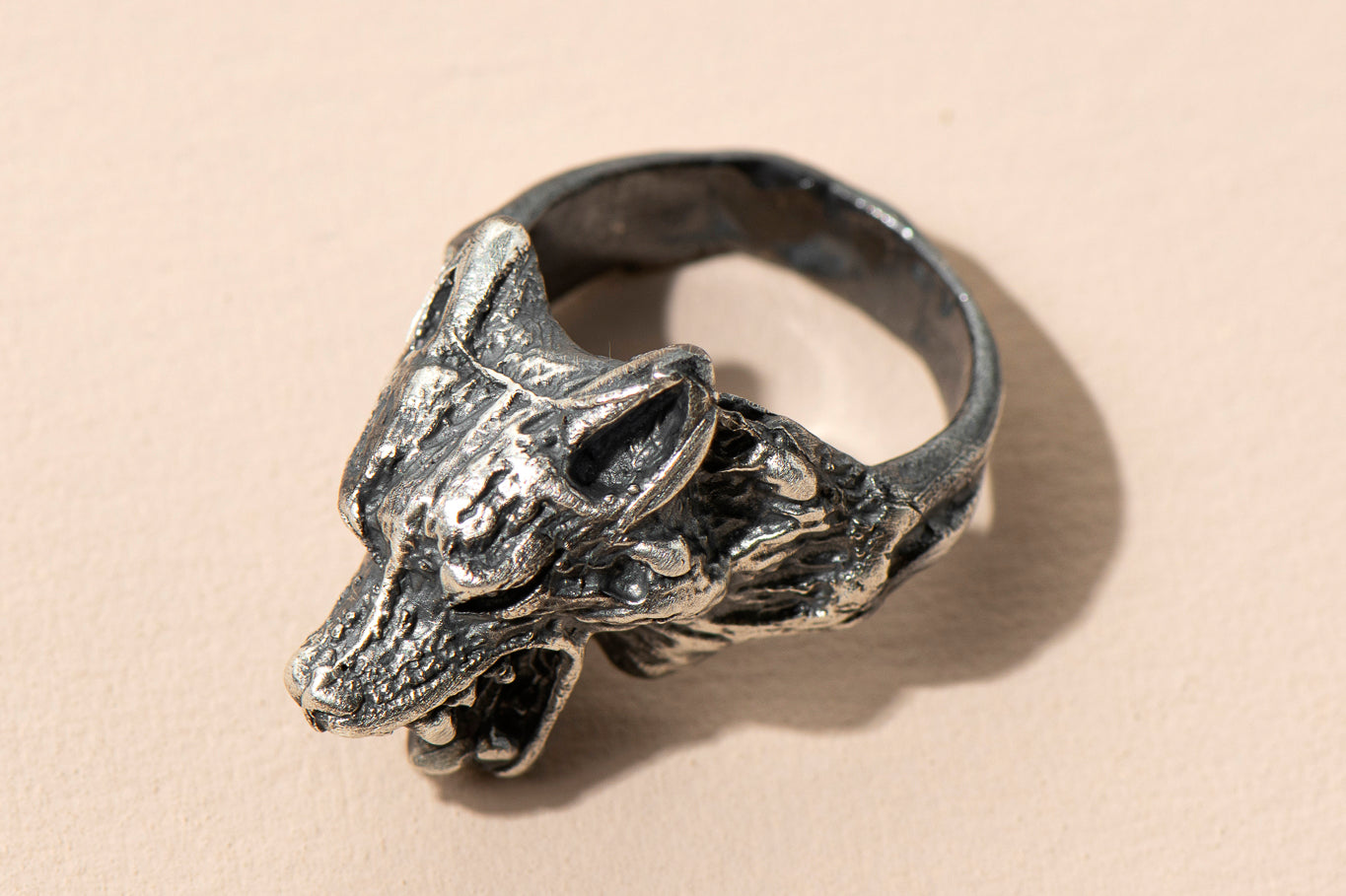 This fierce lone wolf ring is cast via the lost wax method in Melbourne, before returning to my studio for clean up and oxidising. The sterling silver used in this piece is 100% recycled, making for the perfect sustainable gift.