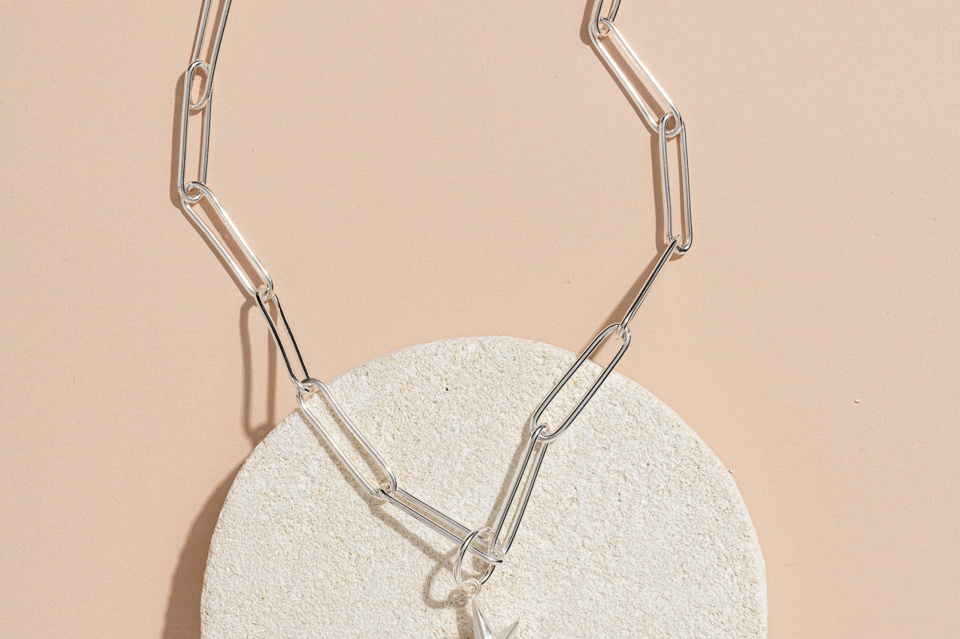 I've made these with a large jump ring that will fit our trombone, Octavio and paperclip link chains. If you want a small jump ring that will suit a thinner layering chain, please leave a note at checkout and I'll switch the large jump ring out to a smaller one for you.