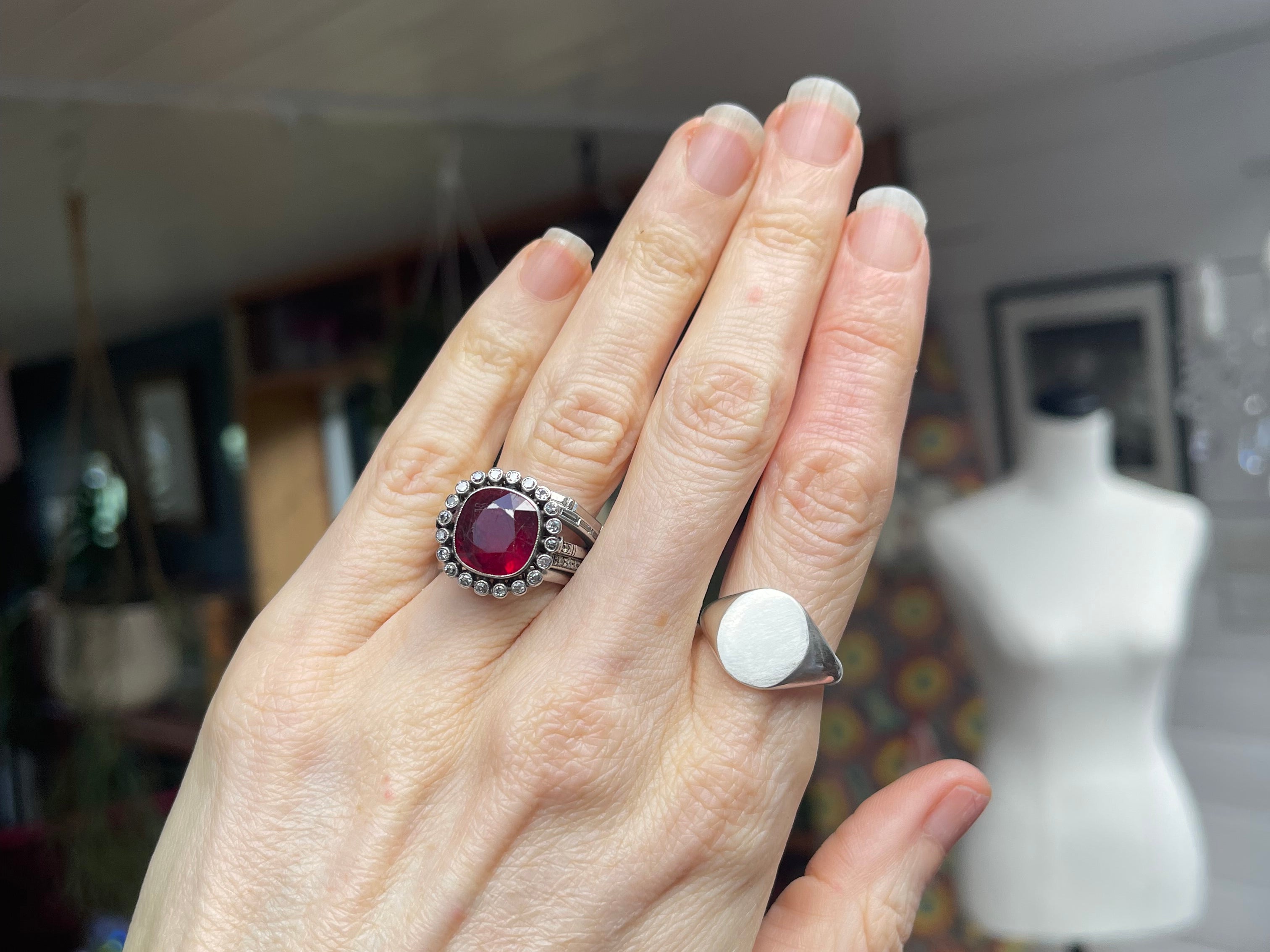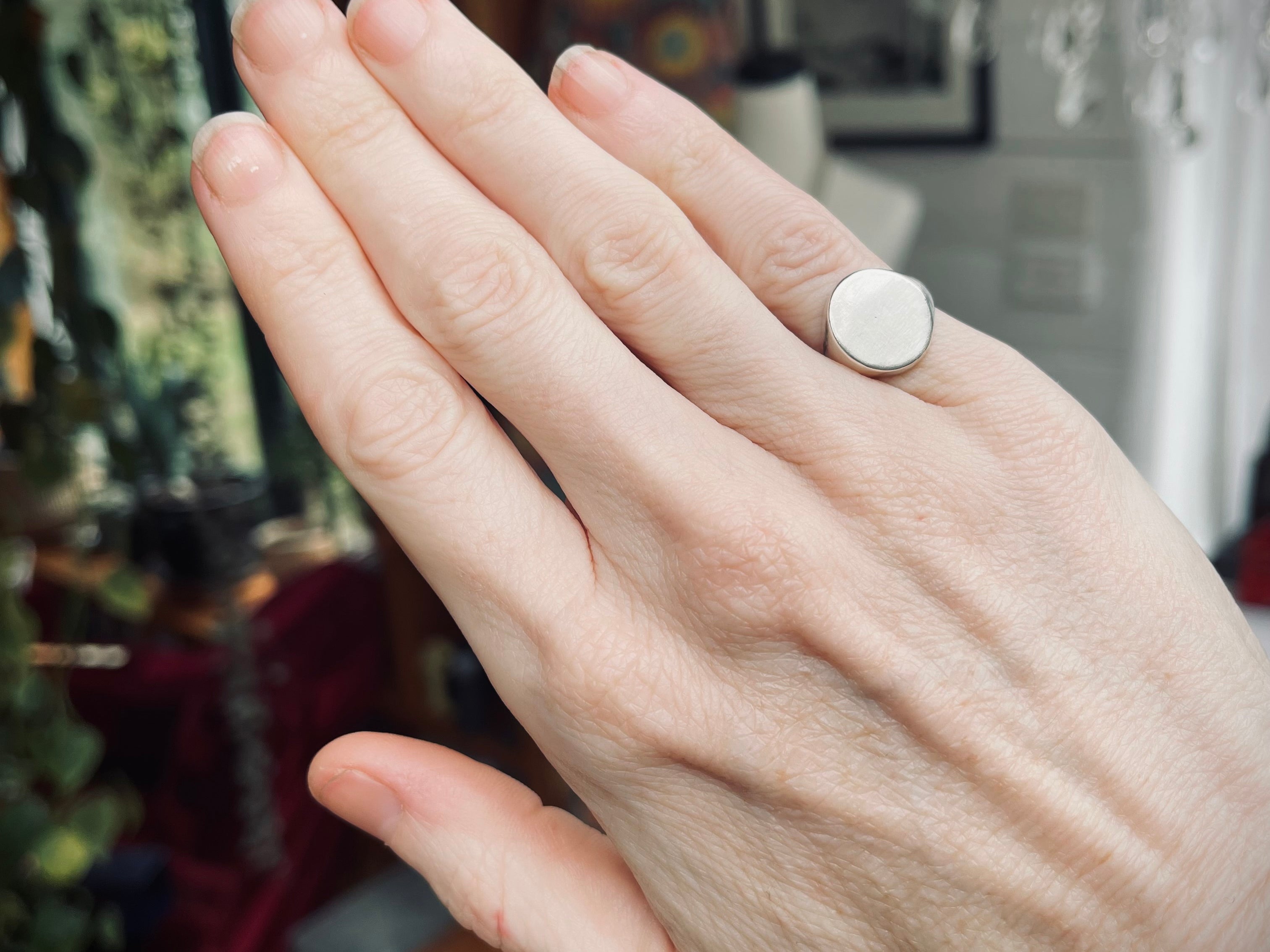 If you’re in the market for a pinky signet, I have to say I think this is one of the most comfortable fitting pinky rings I’ve ever worn. It’s solid. Not hollowed out underneath to cut down on metal, and therefore cost, as a result the precious metal is in contact with your finger all the way around the ring. It grips on to the top of your finger with no pesky gaps or gaping making for a lovely, comfortably fitting, signet ring.